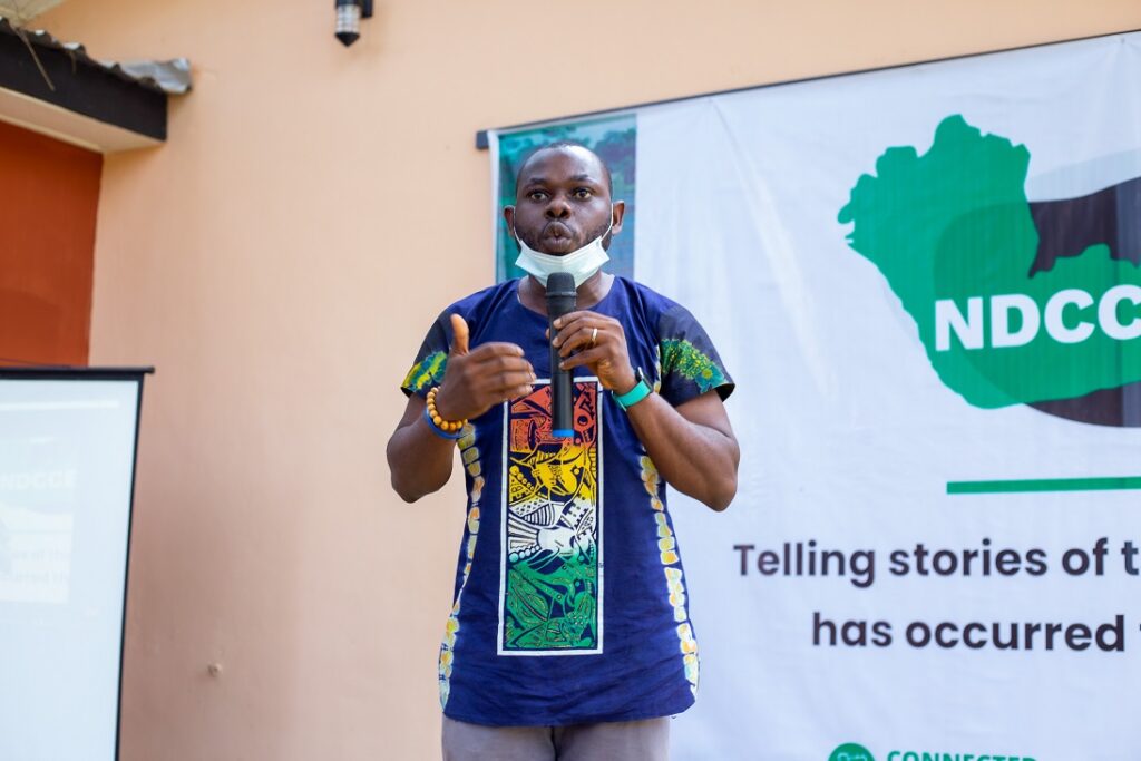 In his opening remark, the Executive Director of Connected Advocacy Prince Israel Orekha gave an overview of what the exhibition represents and what his team intend to achieve. In his words, “The artworks here represent the situation and community reports we got from across the Niger Delta on how climate change affects us. These artworks were done by us and we are using them to tell the story of climate change. We want these stories to be readily available in the hands of the youth, policymakers and the public―we believe this will help us all see the need to take urgent steps against climate change.”